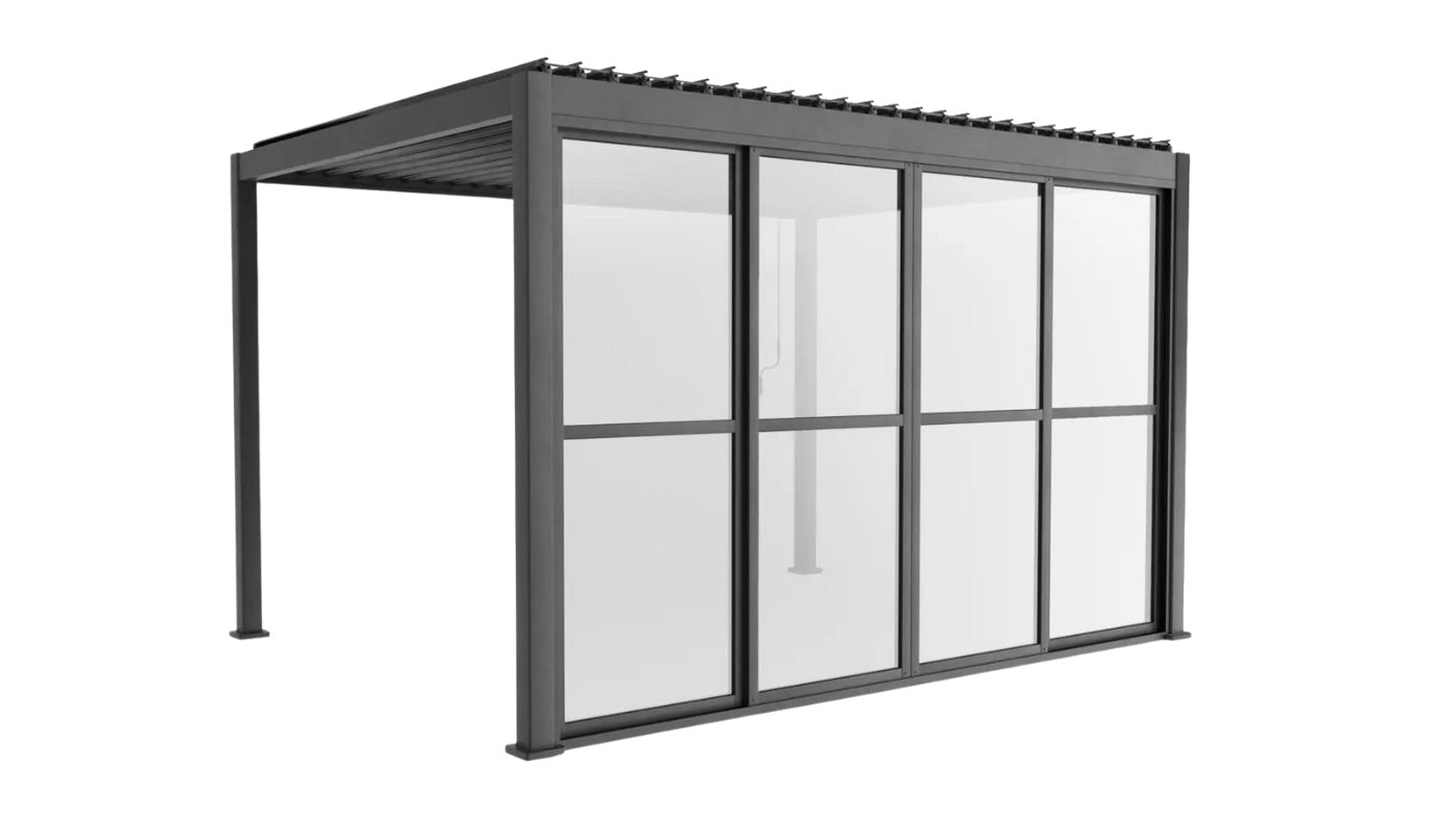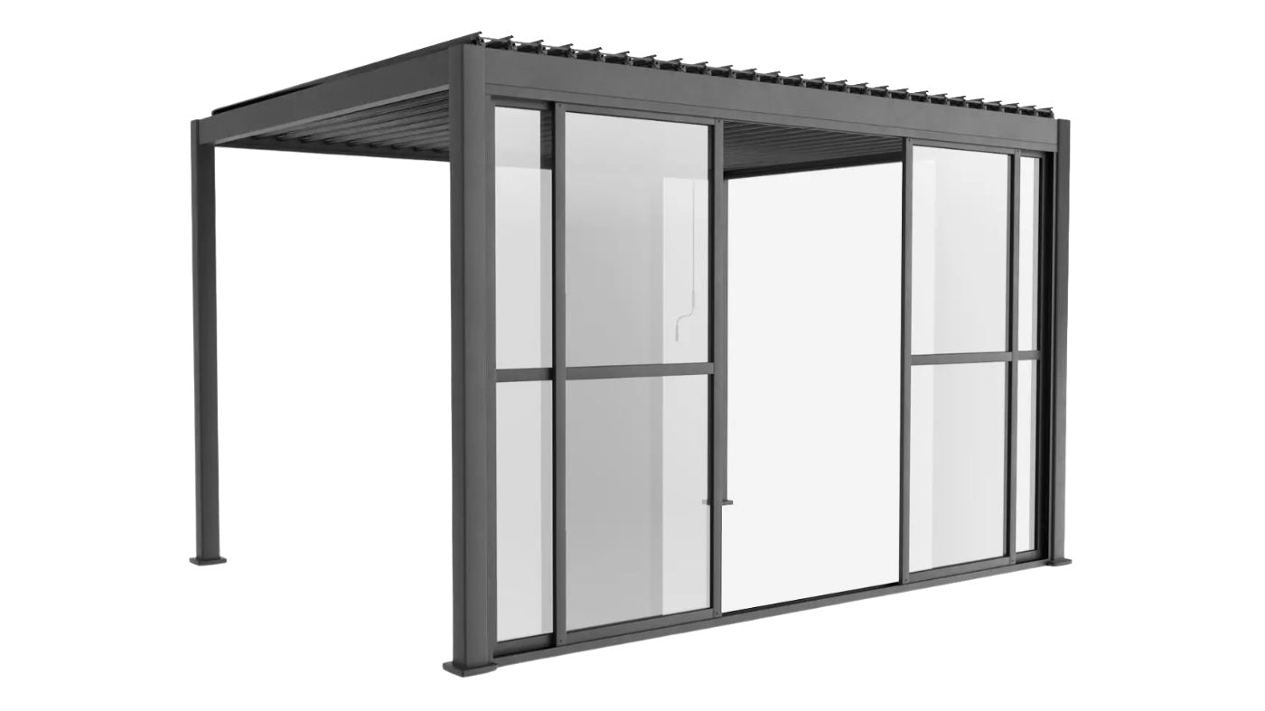 Breid je overkapping uit met glazen schuifwanden, aluminium wanden of stijlvolle zonneschermen voor extra comfort en privacy.