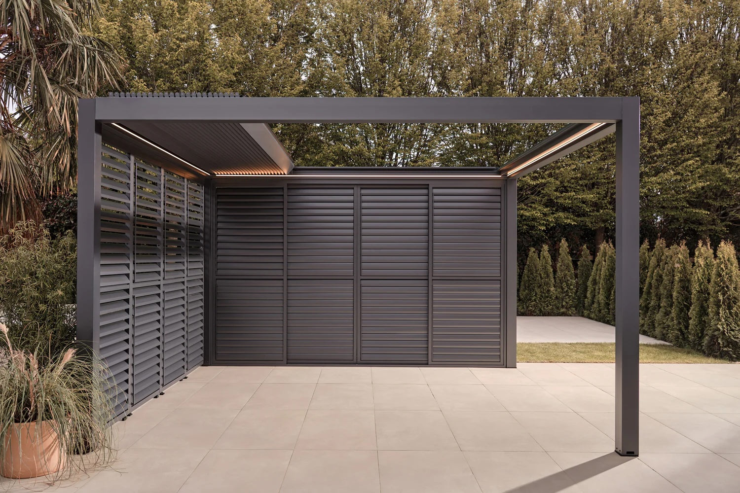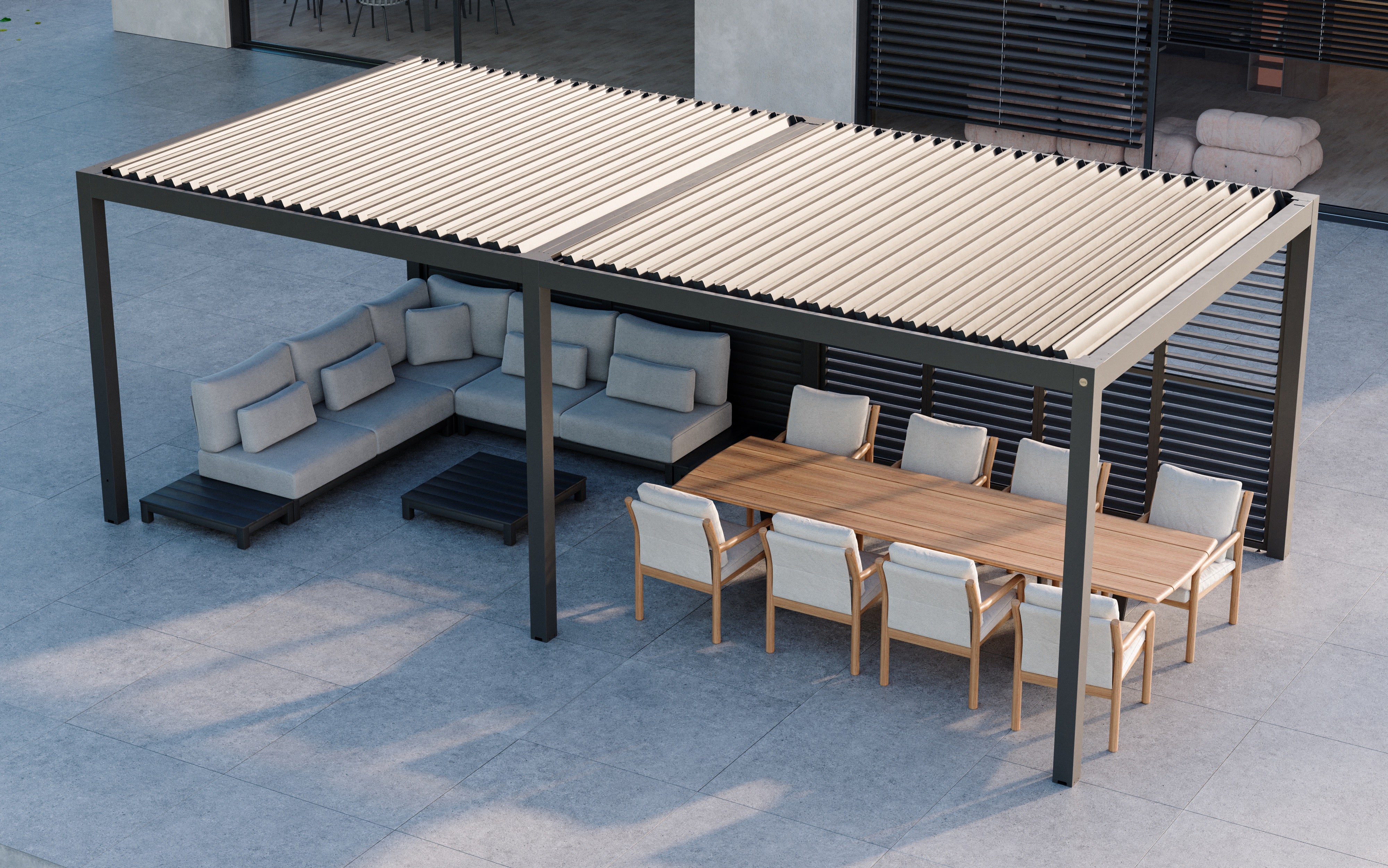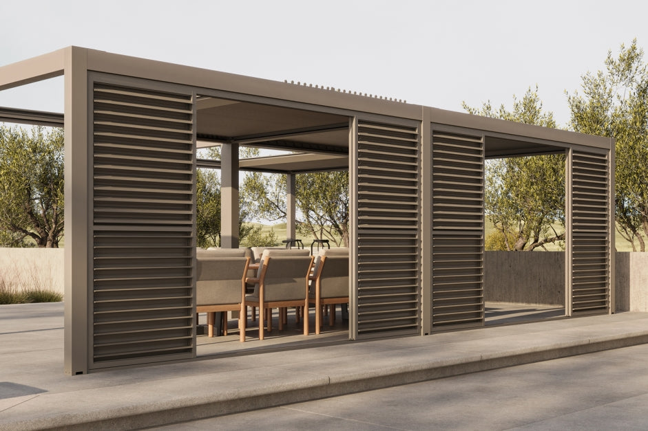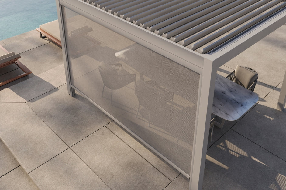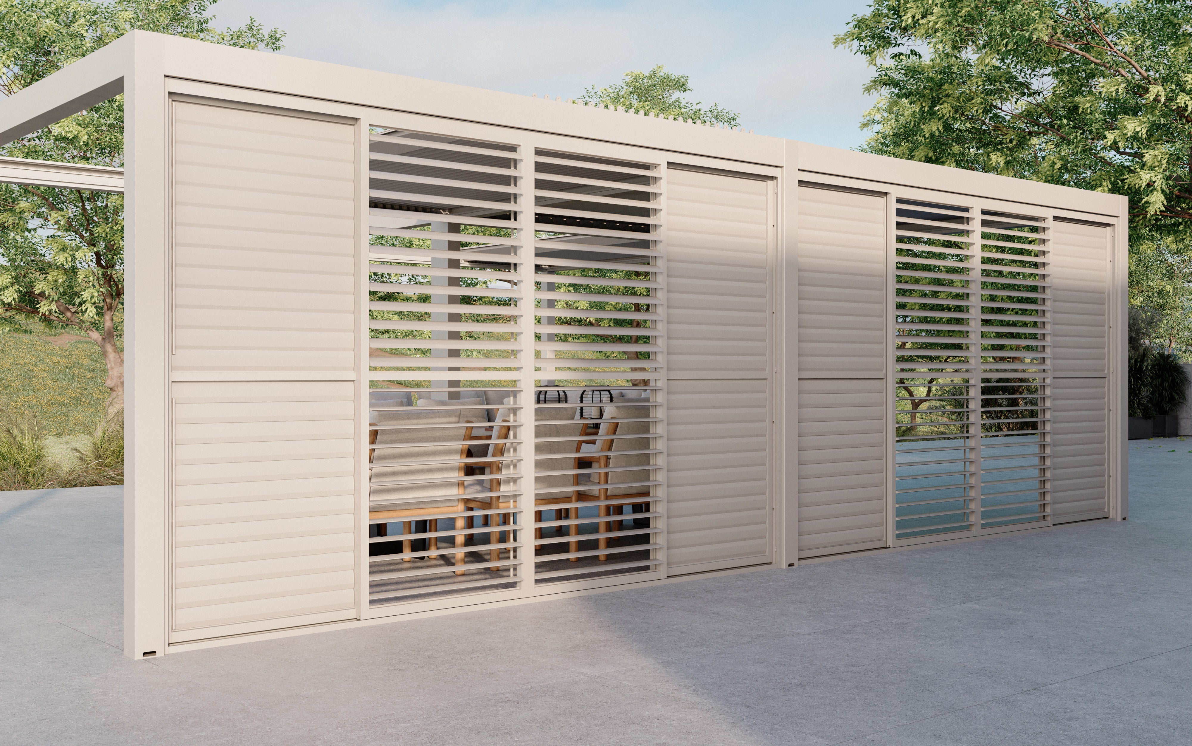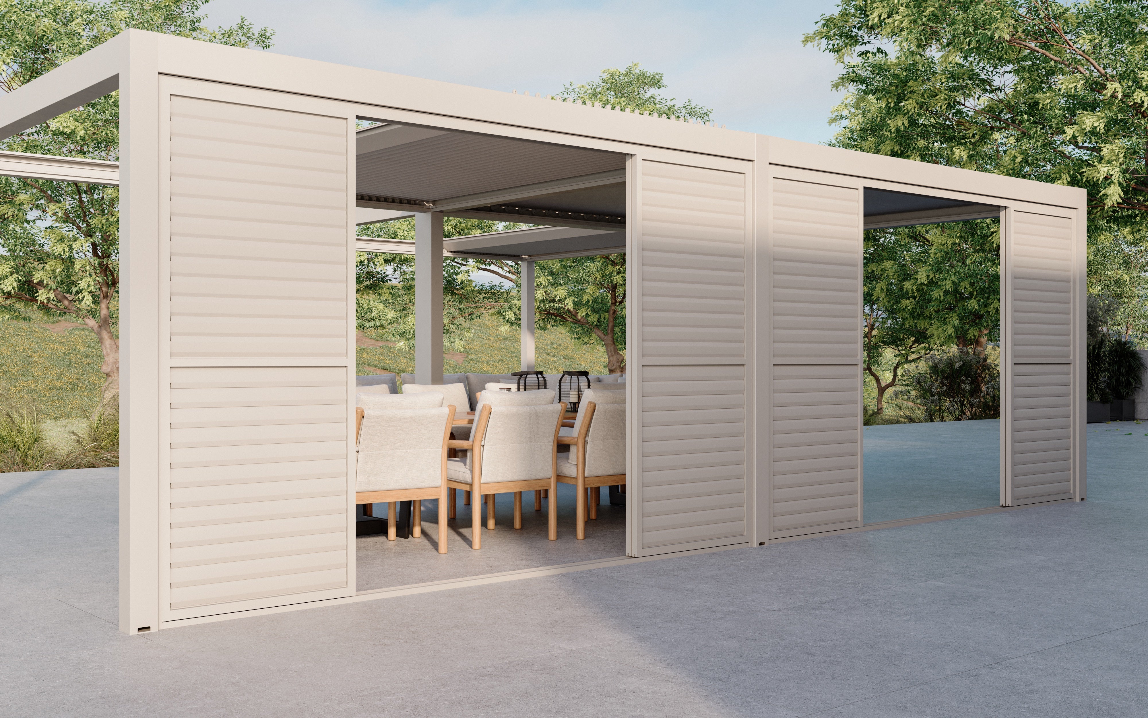 Voeg zonneschermen, aluminium panelen of glazen schuifwanden toe. Alles in dezelfde kleur als het frame, zodat jouw terras zowel stijlvol als praktisch blijft.
